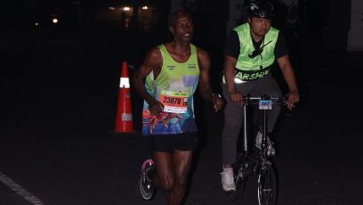 Pelari asal Jakarta tersebut berhasil menuntaskan nomor Half Marathon dengan mendorong stroller. Ia sukses finis dengan mencatatkan waktu 2 jam 23 menit 39 detik.