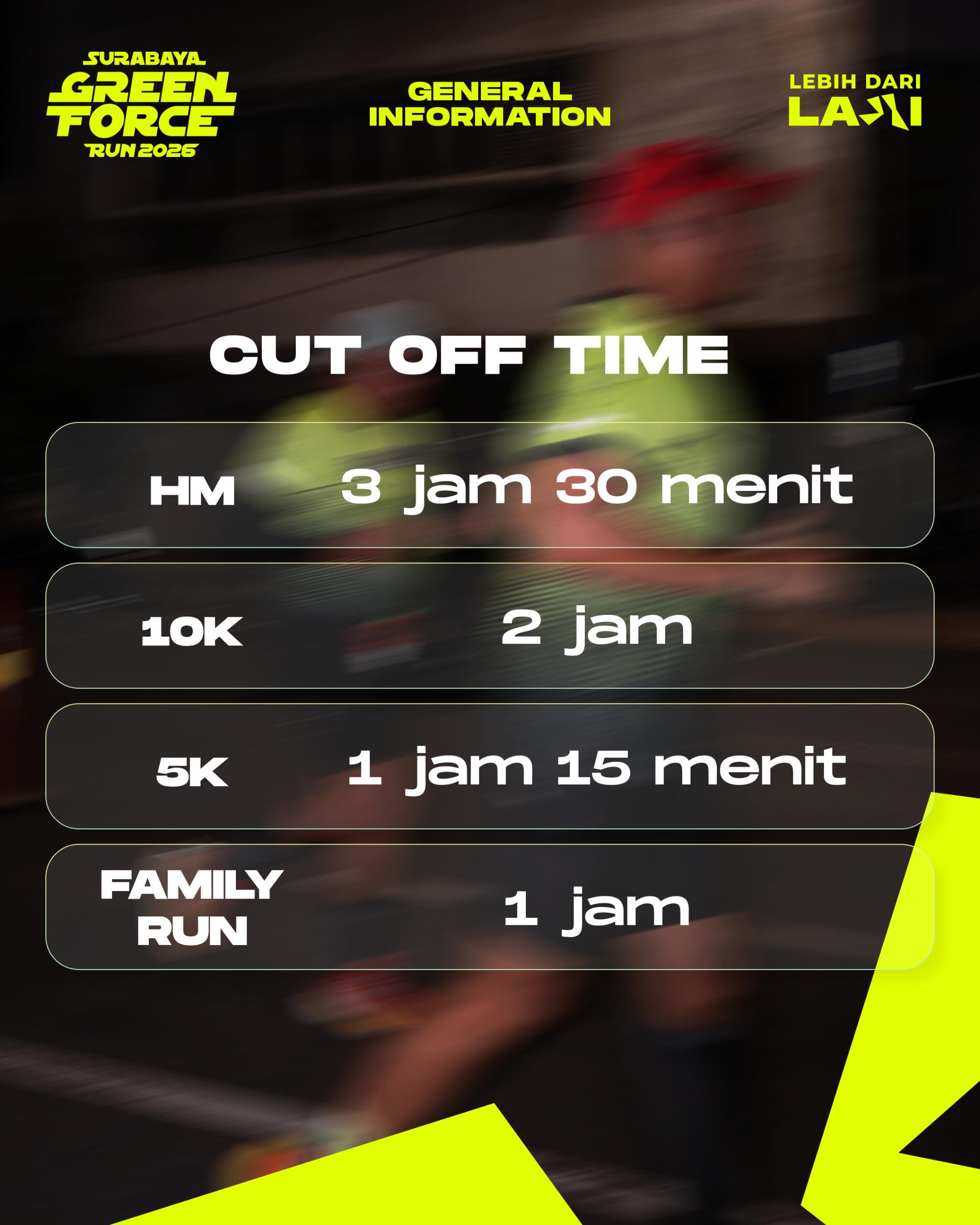Surabaya Green Force Run 2026 punya kategori Half Marathon yang sudah terverifikasi PASI. Juga punya kategori lain dari 10K, 5K, Family Run, hingga Kids Dash.