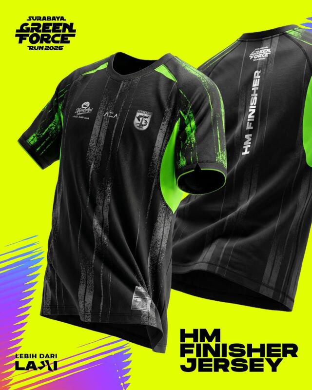Sihir yang menjadi semangat para penamat. Surabaya Green Force Run 2026 merilis jersei finisher kategori Half Marathon. Jersei yang sudah dinanti sejak lama oleh para pelari. Setiap postingan di Instagram Green Force Run, para pelari nyaris tak absen menanyakan jersei finisher Half Marathon.